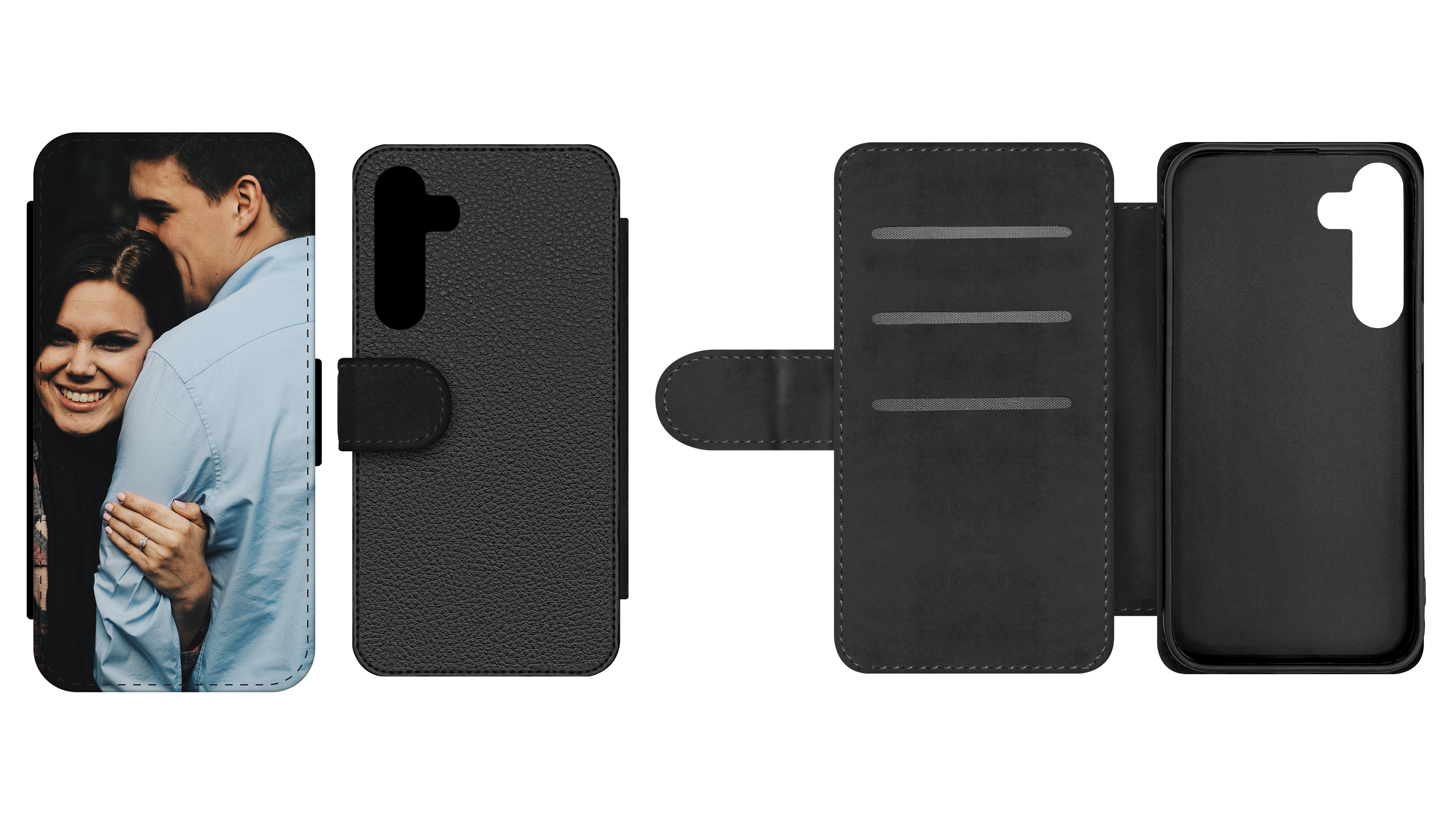 Damit du auch wirklich eine Samsung Galaxy S25 Hülle gestalten kannst, die zu deinem Leben passt, stehen dir bei der Gestaltung deiner Samsung Galaxy S25 Smartphonehülle mit eigenen Bildern natürlich auch verschiedene Schutzhüllen zur Auswahl. Das Samsung Galaxy S25 Flipcase mit Foto oder Namen ist dabei eine beliebte Wahl bei Menschen, die gerne unterwegs sind und am liebsten alles griffbereit haben. Es umhüllt dein Telefon wie ein Notizbuch und verschließt es mit dem praktischen Magnet-Schnellverschluss. Display, Rückseite, Kanten und Seiten sind dadurch optimal geschützt – also der perfekte Rundumschutz für dein Handy! Besonders praktisch sind die inneren Einstecktaschen für Karten und Ausweise. Der hochwertige und fasertiefe Textildruck verleiht deinem Motiv das gewisse Etwas.